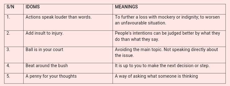 Pupil’s Activities – Pupils match idioms and their meanings as guided by the teacher.