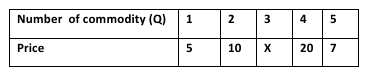 14. The table shows the prices and numbers of commodities bought. If the total price is 50, find the value of x.